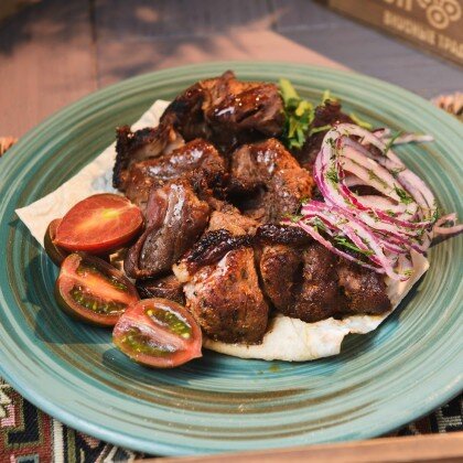 Сочный куриный шашлык с маринованным луком и черри P.S. С соусом вкуснее