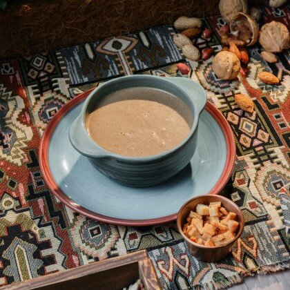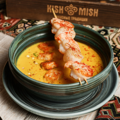 Суп-пюре из тыквы с шашлычком из морепродуктов