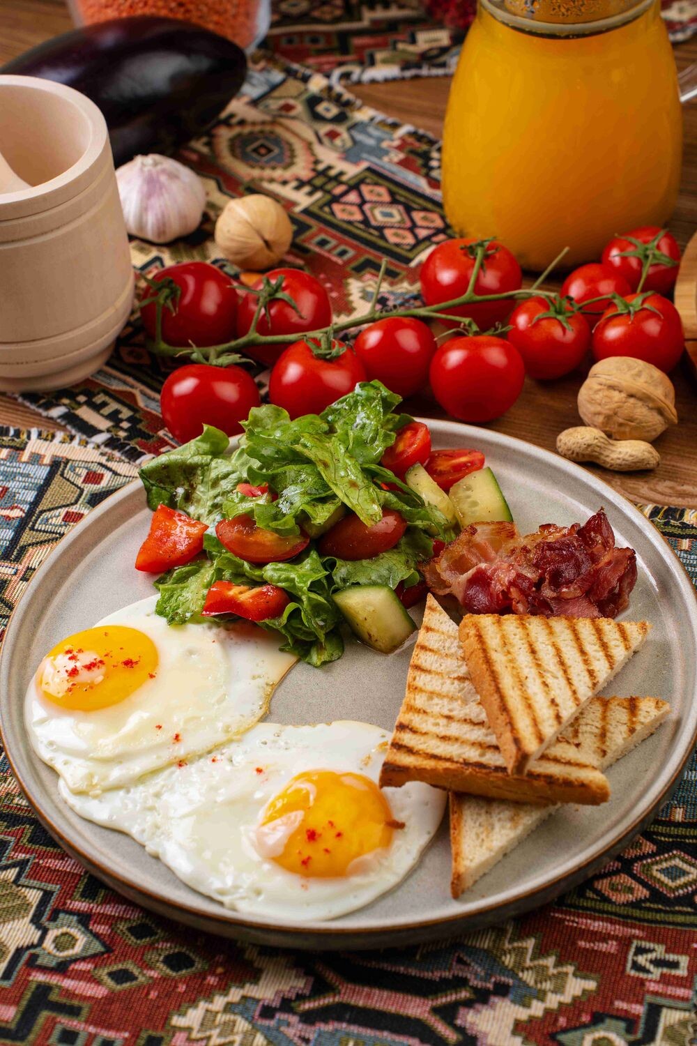 Яичница с беконом и хрустящими тостами