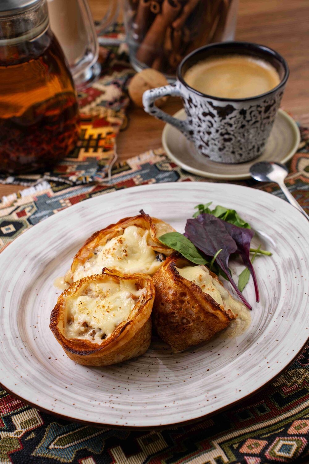 Блины "Сюзетт" с мороженым и корицей